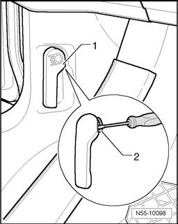 - Insert a small screwdriver into gap between release lever - 1 - and clip - 2 -.