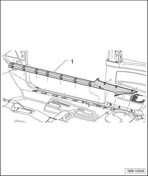 - Remove sill panel trim - 1 - out of mounts in sill, side trim and door seal molding.