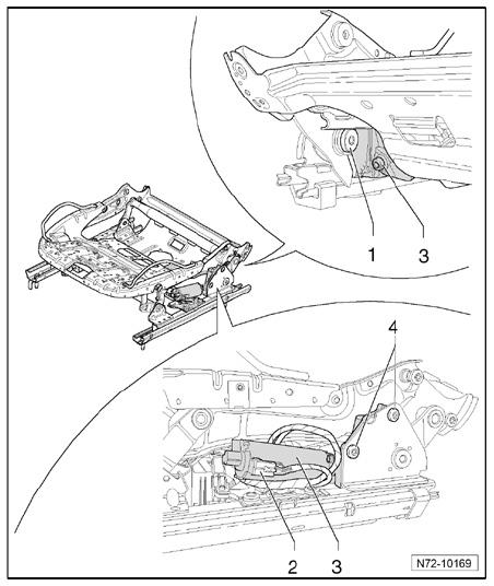 - Disconnect wiring harness - 2 - from height adjuster - 3 -.