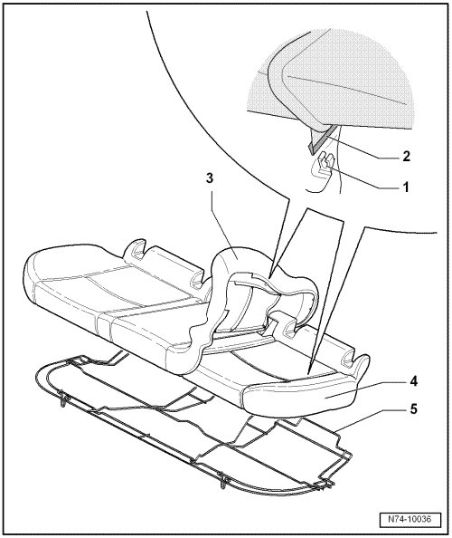 - Release cover - 3 - and upholstery - 4 - from seat frame - 5 -.