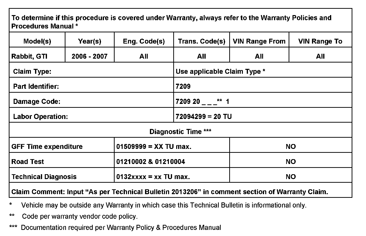 2013206 Supersedes T.B. Group 72 number 06-02 dated Oct. 20, 2006 due to change to Condition description.