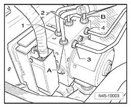 - First, mark both brake lines from master cylinder - A and B - and remove from hydraulic unit.