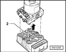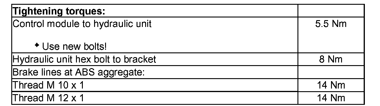^ Separation from control module and hydraulic unit is not possible on vehicles with hydraulic brake booster or hill assist.