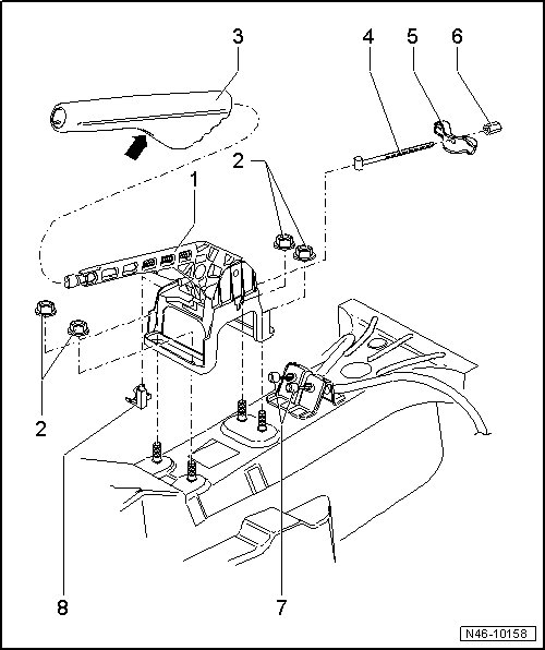 • Removing and installing, from MY 2008. Refer to => [ Parking Brake Lever, from MY 2008 ] .