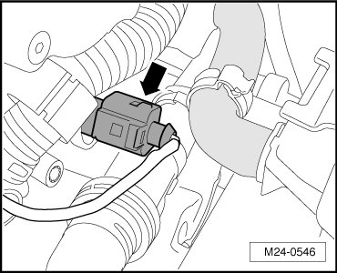- Disconnect the Engine Coolant Temperature (ECT) Sensor (G62) electrical harness connector - arrow -.