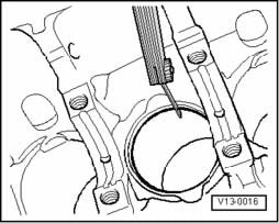 ^ Cylinder bore measurement must not be performed if cylinder block is secured to assembly stand with holding fixture VAS 6095, since inaccurate measurements are possible.