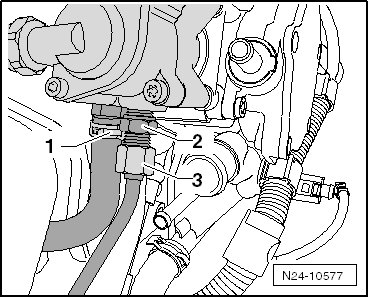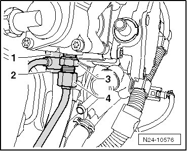 - Counter hold the fitting - 2 - and remove the fuel pipe - 3 -.