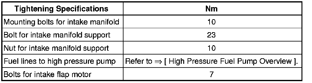 • If a fuel injector was pulled out of the cylinder head when removing the intake manifold, the Teflon seal must be replaced. Refer to => [ Fuel Injector Teflon Seal ] Fuel Injector Teflon Seal.
