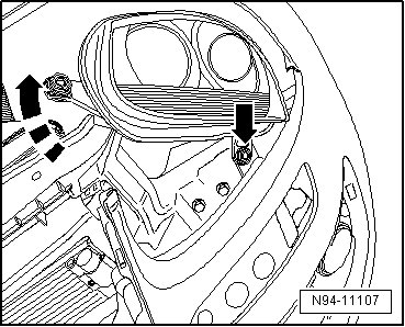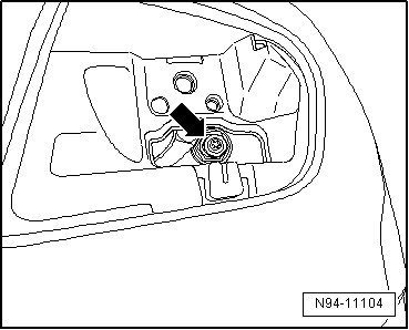- Remove the mounting bolt - arrow - at on the inside of the headlamp.