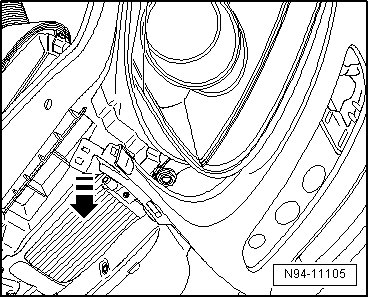 - Turn the headlamp forward until the inner cover cap - arrow - on the lock carrier can be guided past.