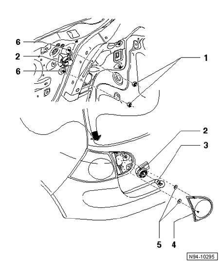 6. Screw head to Tail lamp housing in rear lid