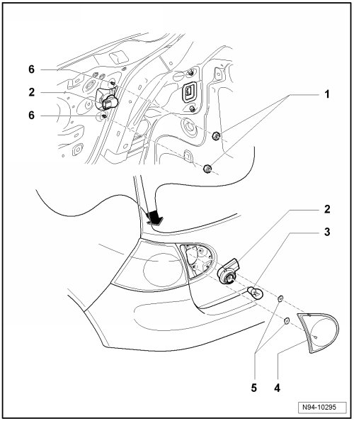 • Removing and installing, refer to=> [ Rear Lid Tail Lamp Bulb Holder ] Tail lamps