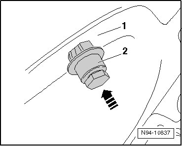 - Press adjusting element - 2 - in - direction of arrow - into body panel - 1 - using an SW10 socket until element engages.