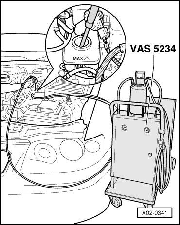 - Set the correct pressure using the brake filler and bleeder unit (VAS 5234): Chassis, Brake Systems=> Chassis, Brake Systems 47 Brake System, BleedingBrake System, Bleeding