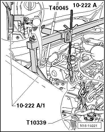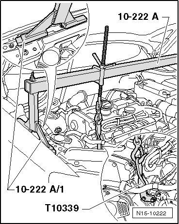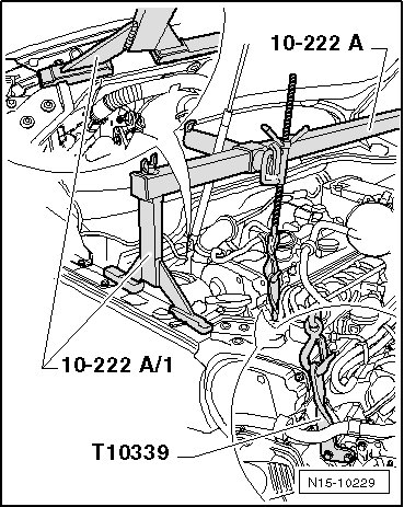 Make sure that no components/hoses are damaged, overstretched or torn when lifting the engine using (10-222A).