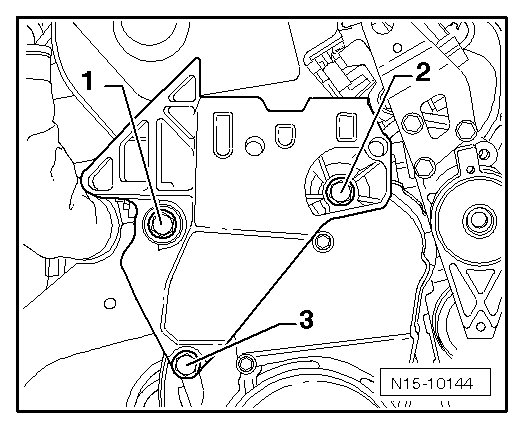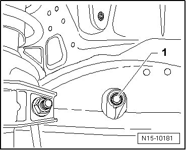 - Remove the engine mount bracket - 1 - through the hole in the wheel housing.