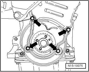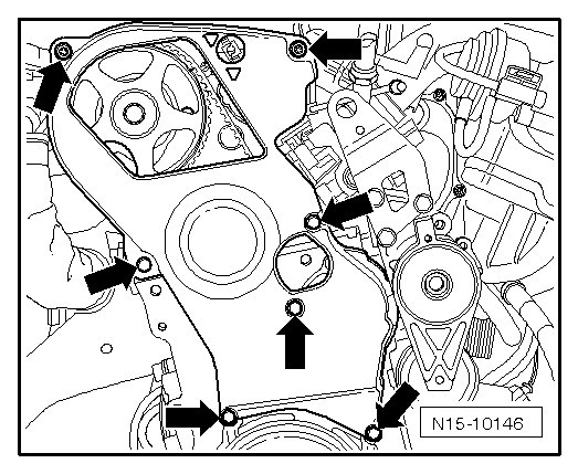 - Remove the remaining toothed belt guard bolts - arrows - and remove the toothed belt guard.