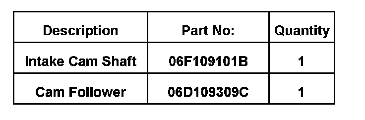 If the high pressure fuel pump camshaft lobe shows excessive wear, replace the intake camshaft with Part No. 06F109101B and the cam follower with Part No. 06D109309C, see Group 15 Engine - Cylinder head, Valvetrain in ElsaWeb.