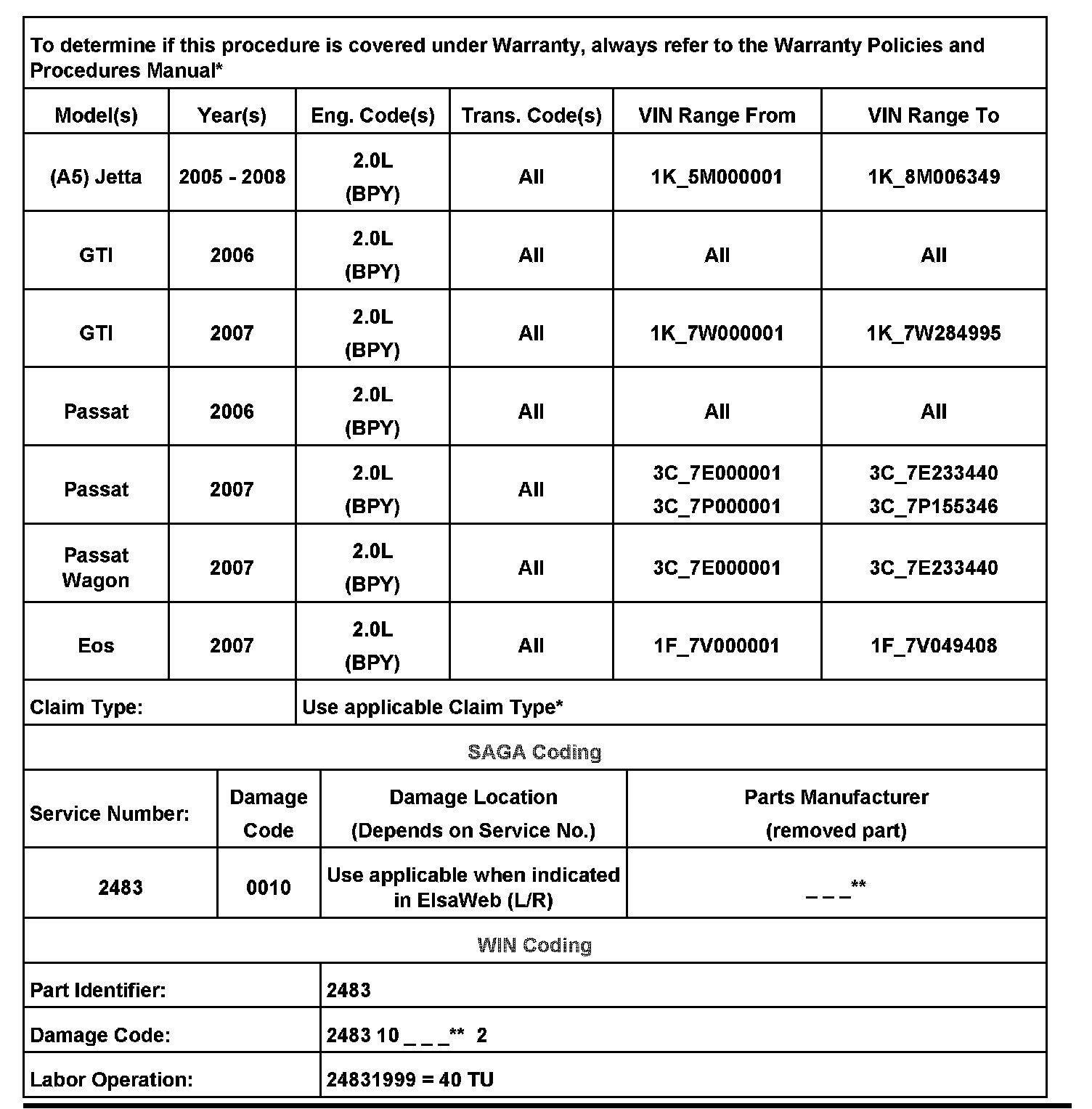 2015148 Supersedes T.B. Group 20 number 07-09 dated June 29, 2007 due to part number change and additional (A5) Jetta ending VIN range.