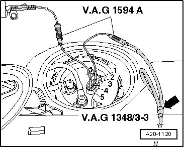 - Using a Multimeter, check the electrical circuit between terminals - 1 - and - 5 - of the fuel delivery unit and the fuel pump for continuity.