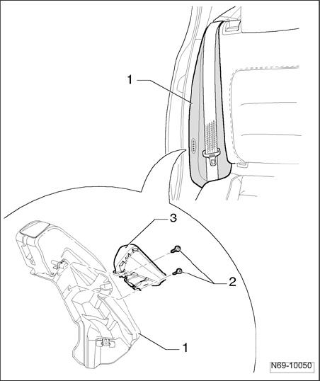 - Remove rear side airbag connector coupling - 3 - from mount in side upholstery - 1 -.