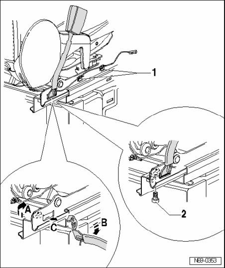 - If present, disconnect wiring harness - 1 - from seat frame.