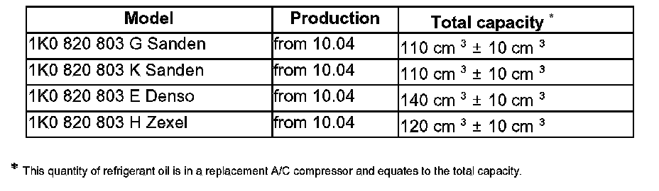 Refrigerant (PAG) Oil, Capacities