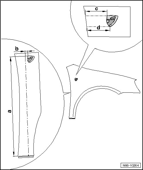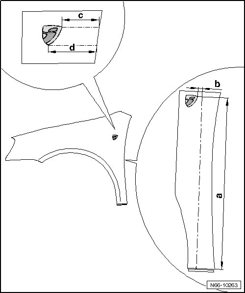 Check the distance between the upper edge of the emblem to the edge of the fender with - dimension c -.