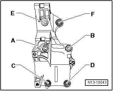 - Tighten the accessory bracket bolts in the sequence shown to 40 Nm.