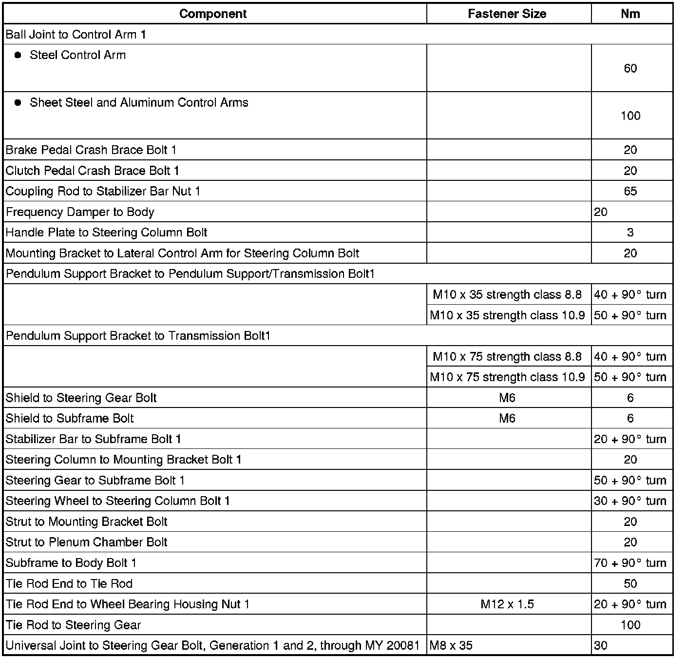 Fastener Tightening Specifications