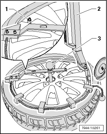 - Turn wheel on tire mounting device so that tire valve/tire pressure sensor - 2 - stands in front of mounting head - 1 -.