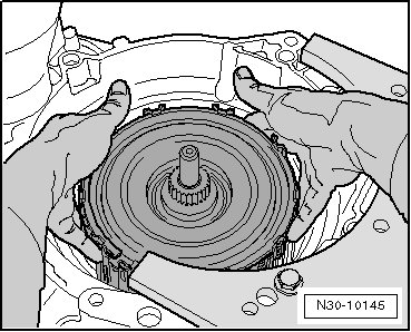 Avoid removing or lifting the clutch pack carrier even slightly! The clutch discs could rotate.