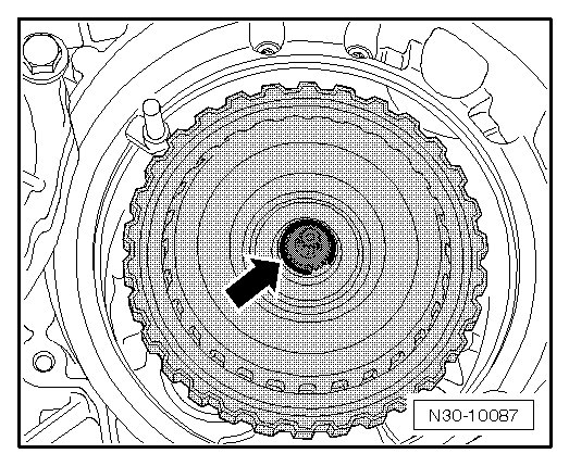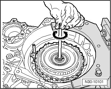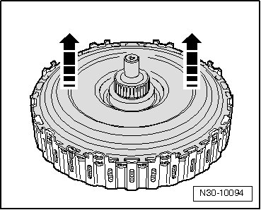 The large lamella carrier is inserted in all clutch discs in the clutch. The large lamella carrier must not slipped out of the lowest clutch disc.