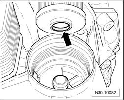 - As soon as oil has run out (it begins to drip), remove Adapter For Oil Filling VAS 6262 and install plug with new seal.