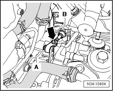 The washer - B - can get lost if it loses its residual stress. The - arrow - points to cable adjustment bolt.
