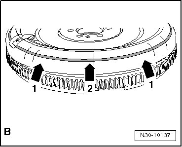 - The outer contour of the flywheel can also be inspected by removing the small cover plate - A -.