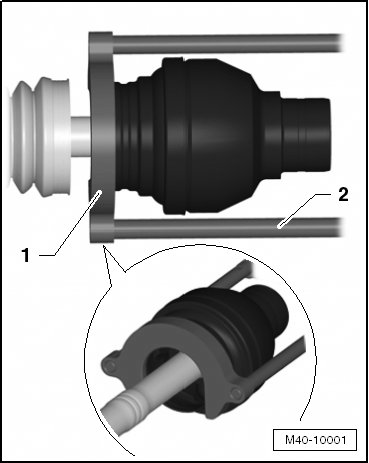A stainless steel clamp must be used due to hardness of CV boot material (compared to rubber). This clamp can only be tensioned using (V.A.G 1682).