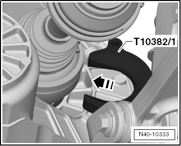The opening - arrow - in the (T10382/1) must face the CV joint- 1 -.