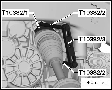 - Place the removing plate (T10382/1) behind the CV joint - 1 -.