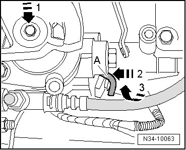 When doing this, the bracket - A - must be pressed out of the transmission in - direction of arrow 1 -.