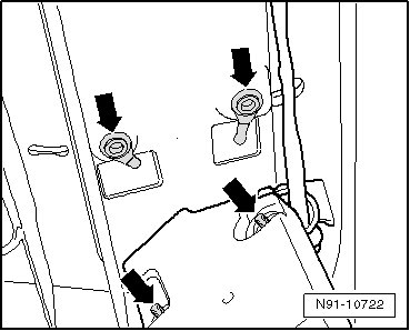 When installing, make sure that antenna connections in rear lid - arrows - and bolts on antenna amplifier - arrows - are metallically clean so that no contact problems occur.
