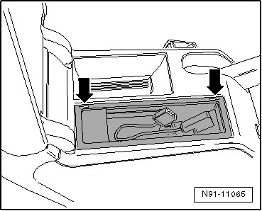 - Insert the (T10057) into the openings - arrows - until it engages.