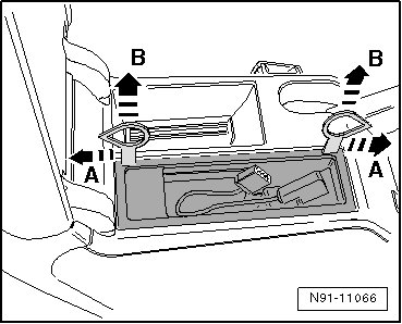 - Press the tools in direction - A - and pull the control module in direction - B -.