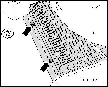- Unclip cover in - direction of arrow - at bottom of seat.