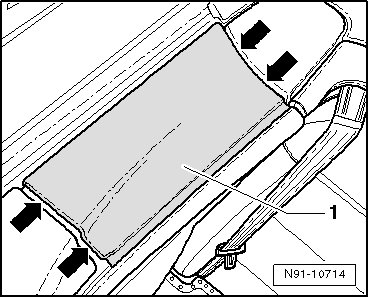 - Remove rubber spacer ring - 1 - from speaker. Remove mounting bolts at speaker - arrows -.