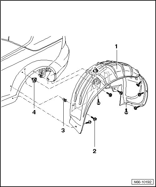 Installation of rear wheel housing liner - 1 - is the same in reverse order.