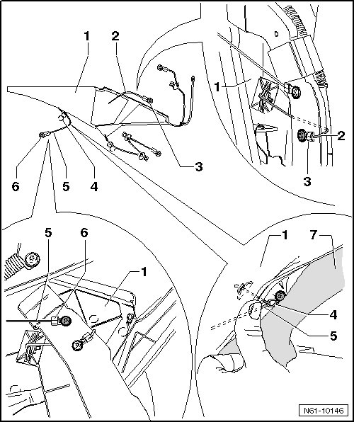 - Loosen the glass panel cables - 2 - from the slotted guide rails - 3 -.