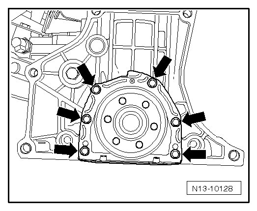 - Remove the sealing flange bolts - arrows -.