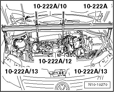 Do not place the bracket for engine (10 - 222 A/1) on the fender panels. The panels will be damaged.