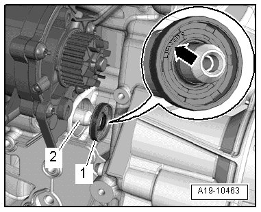 - Push the seal - 1 - onto the balance shaft.